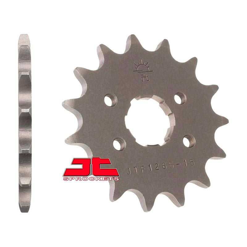 Piñón y corona JT Sprockets, fabricados en acero al carbono de alta resistencia. Puedes variar el número de dientes y el tipo de piñón en el desplegable. Enviaremos la cadena cortada a medida según tu elección.