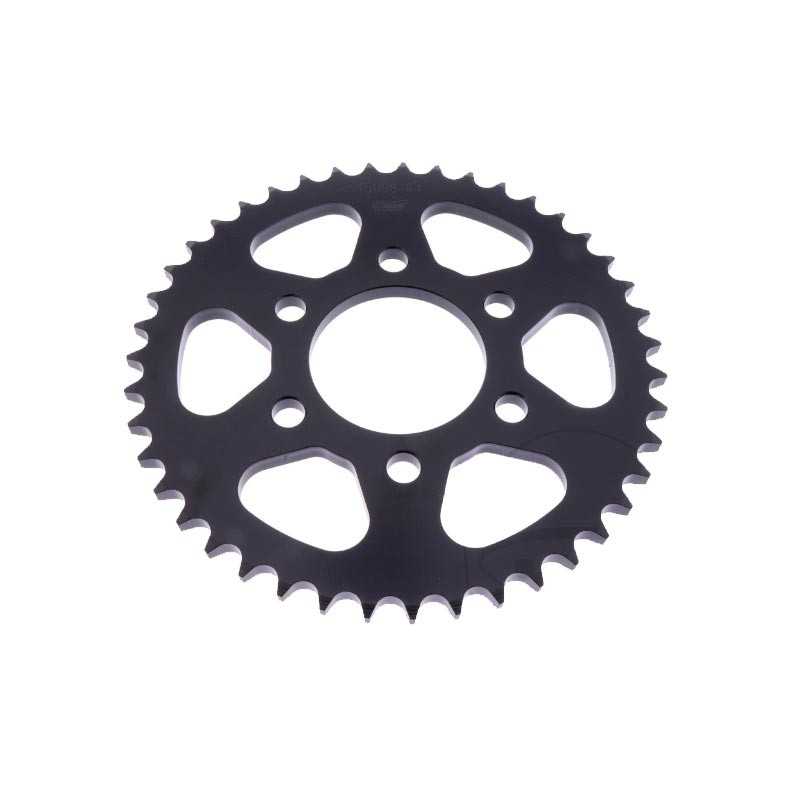 Piñón y corona JT Sprockets, fabricados en acero al carbono de alta resistencia. Puedes variar el número de dientes y el tipo de piñón en el desplegable. Enviaremos la cadena cortada a medida según tu elección.