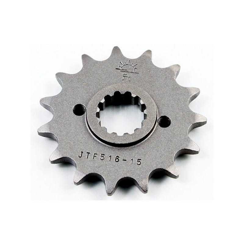 Piñón y corona JT Sprockets, fabricados en acero al carbono de alta resistencia. Puedes variar el número de dientes y el tipo de piñón en el desplegable. Enviaremos la cadena cortada a medida según tu elección.