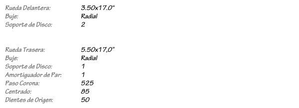 Las masas no suspendidas disminuyen notablemente, esto optimiza la aceleración, la frenada y por tanto el comportamiento de la moto