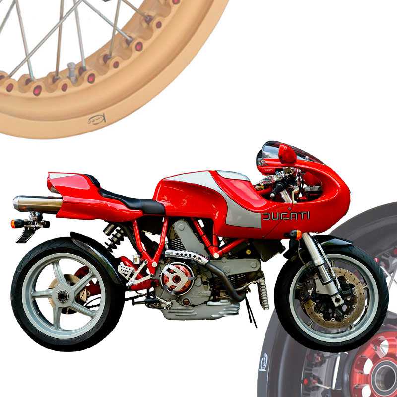 Las masas no suspendidas disminuyen notablemente, esto optimiza la aceleración, la frenada y, por tanto, el comportamiento de la moto