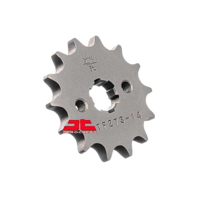 Piñón y corona JT Sprockets, fabricados en acero al carbono de alta resistencia. Puedes variar el número de dientes y el tipo de piñón en el desplegable. Enviaremos la cadena cortada a medida según tu elección.