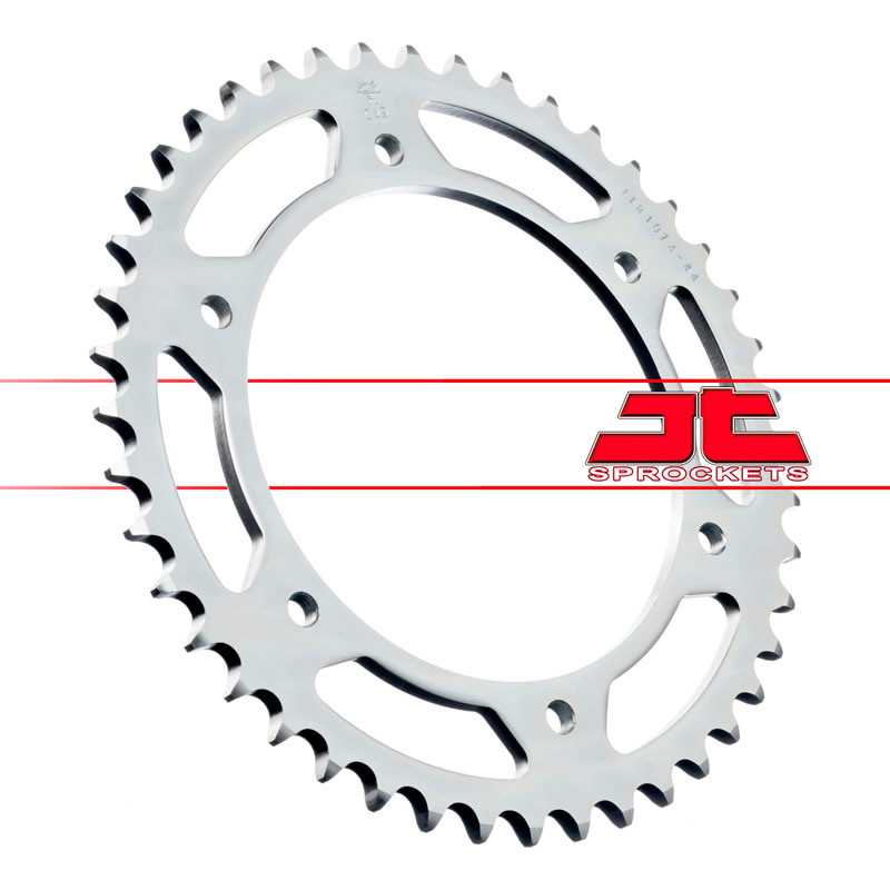 Piñón y corona JT Sporckets, fabricados en acero al carbono de alta resistencia. Puedes variar el número de dientes y el tipo de piñón en el desplegable.