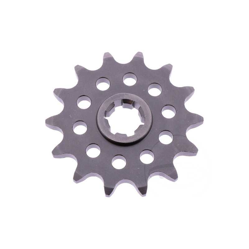 Piñón y corona JT Sprockets, fabricados en acero al carbono de alta resistencia. Puedes variar el número de dientes y el tipo de piñón en el desplegable. Enviaremos la cadena cortada a medida según tu elección.
