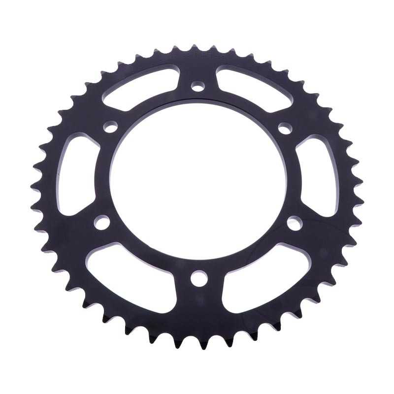 Piñón y corona JT Sprockets, fabricados en acero al carbono de alta resistencia. Puedes variar el número de dientes y el tipo de piñón en el desplegable. Enviaremos la cadena cortada a medida según tu elección.