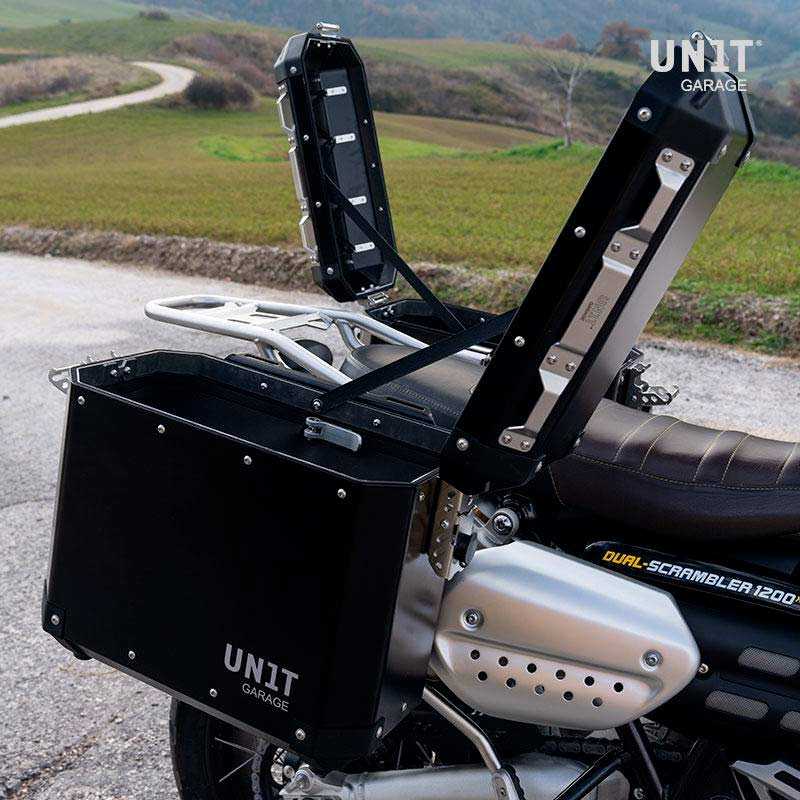 - La maleta es simétrica y se puede montar tanto a la derecha como a la izquierda de la moto.