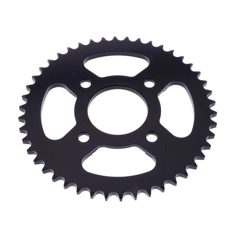 Piñón y corona JT Sprockets, fabricados en acero al carbono de alta resistencia. Puedes variar el número de dientes y el tipo de piñón en el desplegable. Enviaremos la cadena cortada a medida según tu elección.