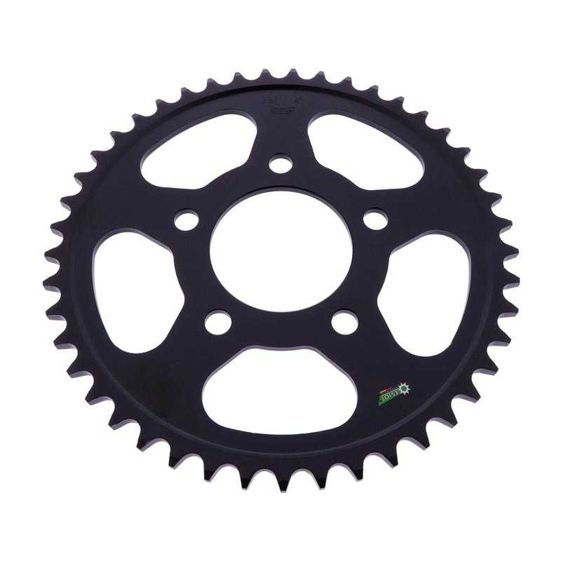 Piñón y corona JT Sprockets, fabricados en acero al carbono de alta resistencia. Puedes variar el número de dientes y el tipo de piñón en el desplegable. Enviaremos la cadena cortada a medida según tu elección.