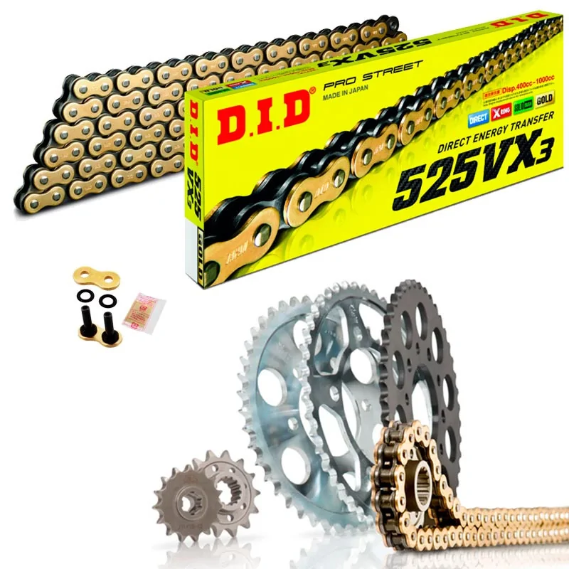 Cadena D.I.D. VX3 con retenes X-Ring de resistencia estándar y de la medida corona-piñón original de tu moto.