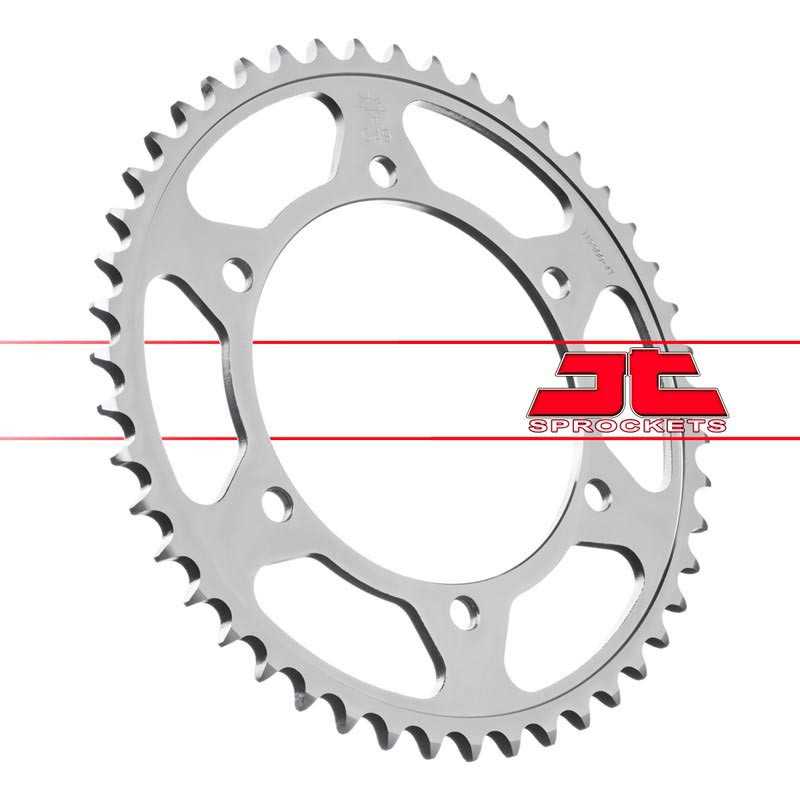 Piñón y corona JT Sporckets, fabricados en acero al carbono de alta resistencia. Puedes variar el número de dientes y el tipo de piñón en el desplegable.