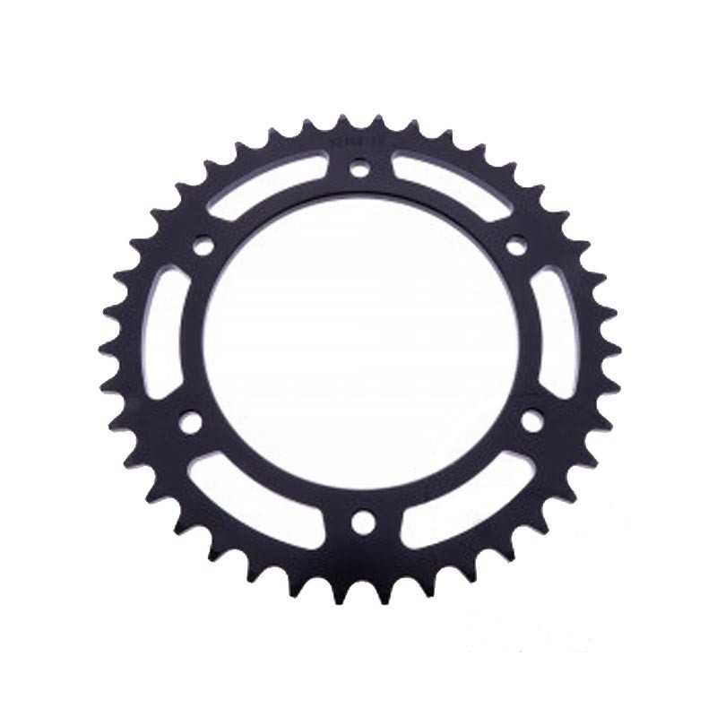 Piñón y corona JT Sprockets, fabricados en acero al carbono de alta resistencia. Puedes variar el número de dientes y el tipo de piñón en el desplegable. Enviaremos la cadena cortada a medida según tu elección.